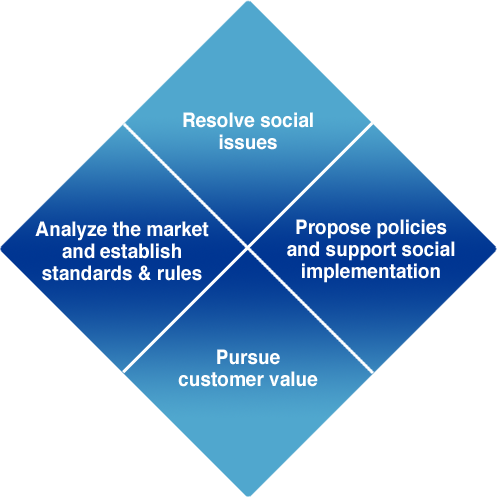 We will work together with our member companies to stay abreast of changes in our surrounding social environment, including social trends and economic trends as well as changes in people's lifestyles and mindsets, and look one step ahead to clarify the issues that need to be addressed as we conduct our business activities to resolve those issues.